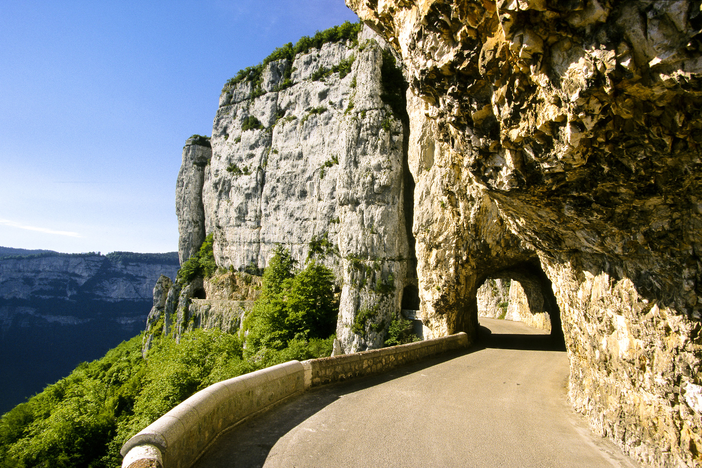 Les routes ont été taillées par les hommes dans la montagne calcaire au début du XXème siècle au prix d’incroyables efforts. Elles se faufilent dans des défilés et des tunnels creusés à même la roche et débouchent sur le plateau du Vercors. Des panoramas grandioses s’offrent alors au promeneur : des cirques calcaires, des forêts à perte de vue et des falaises hautes de 300 m.