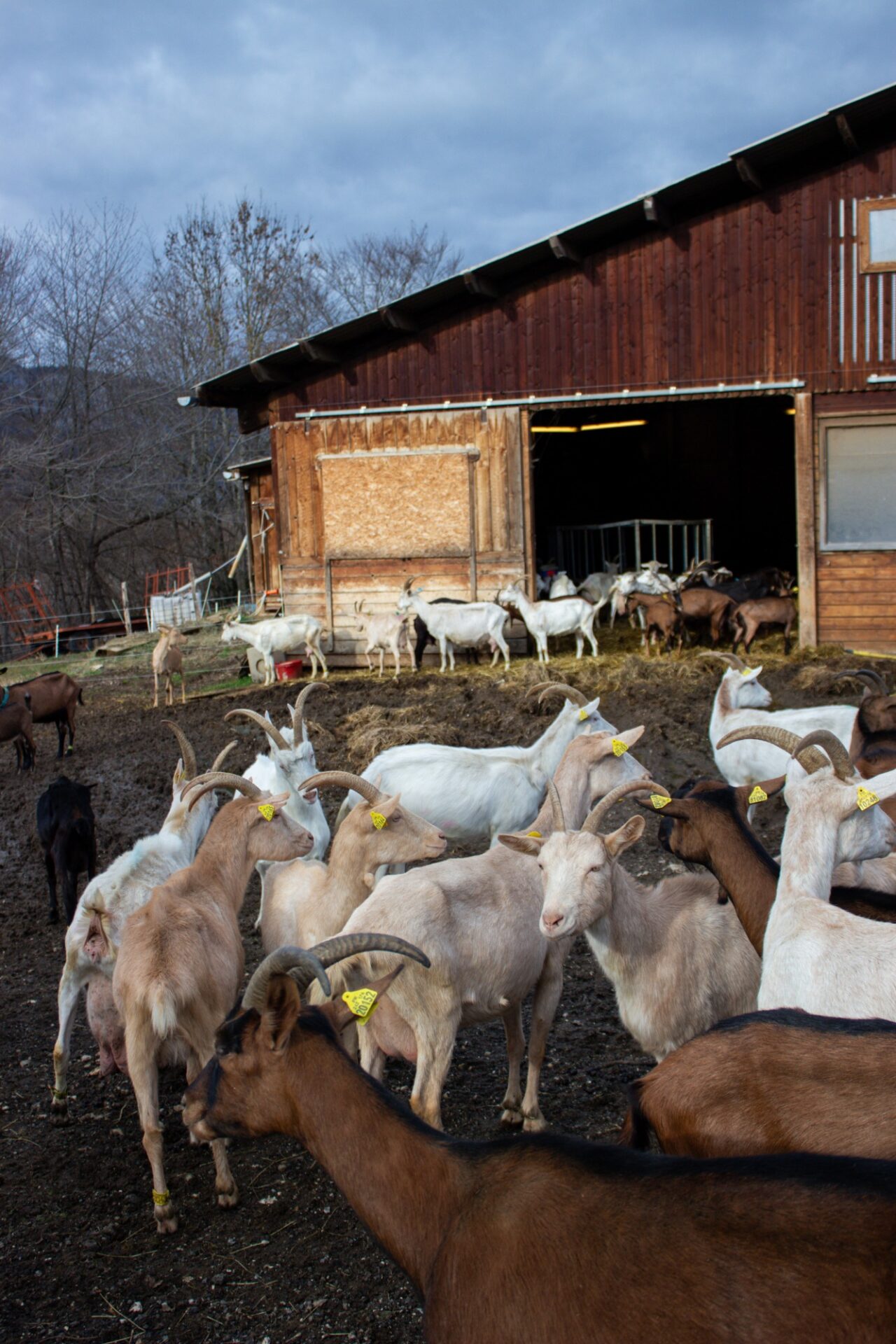 Le sourire aux lèvres, Elena et Jonathan ouvrent les portes de la chèvrerie et c’est parti pour rencontrer leurs 80 chèvres. Les bottes aux pieds, l’appareil photo en main, tout est prêt pour leur tirer le portrait. Entre Lili et Mimine qui grignotent les lacets et Césaria qui prend les pulls pour de l’herbe tendre, on peut dire que ces petites bêtes sont un peu collantes.