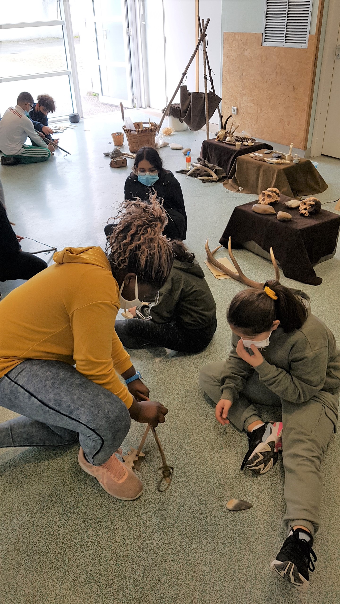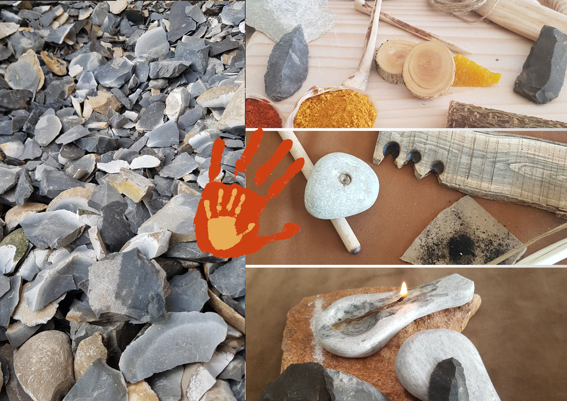 - Ateliers pour comprendre par le geste : faire naitre une braise par friction, réaliser sa parure en matières naturelles, faire du bruit avec son rhombe, sculpter son brûloir en stéatite, préparer son couteau à moissonner, tirer au propulseur de sagaies….