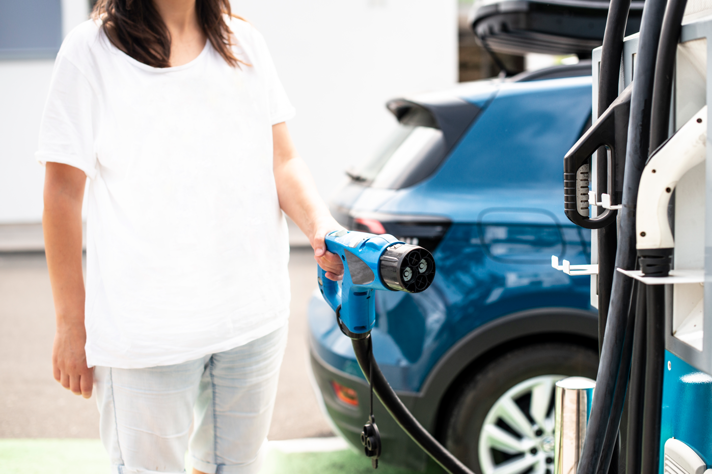 Borne e-born de recharge accélérée équipée de 2 points de charge avec une prise type 2 (charge en 22 kW) et une prise E/F (charge en 3 kW)