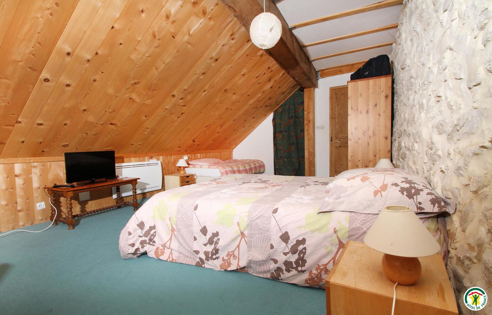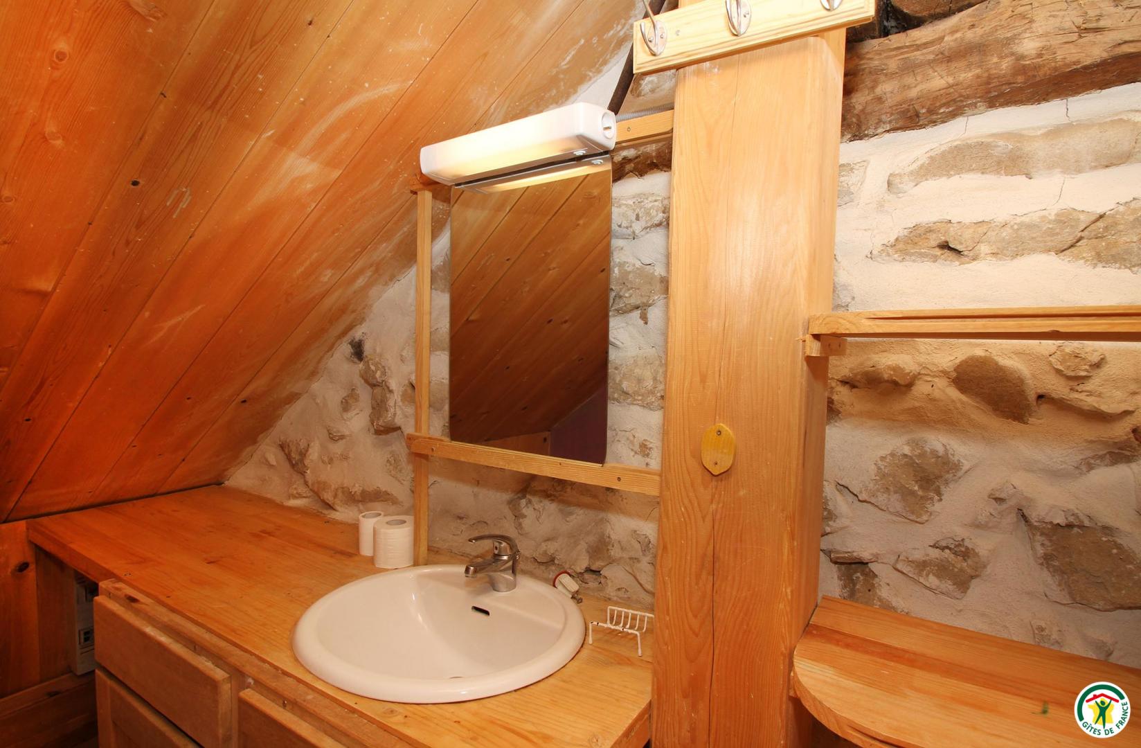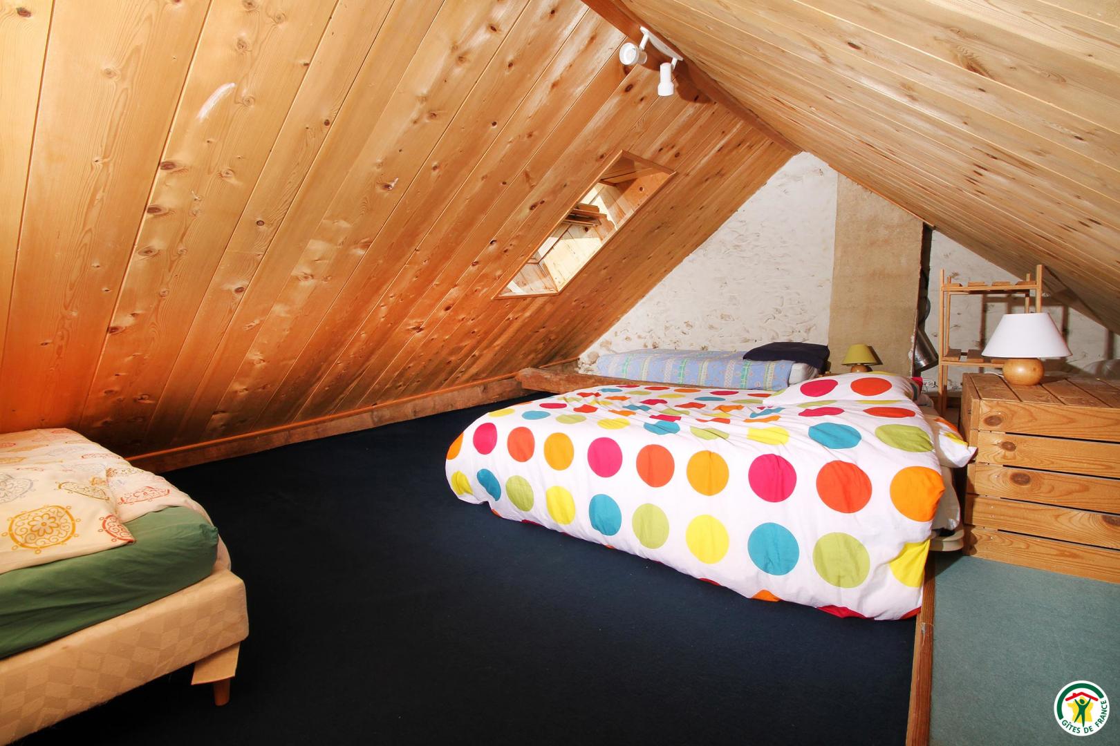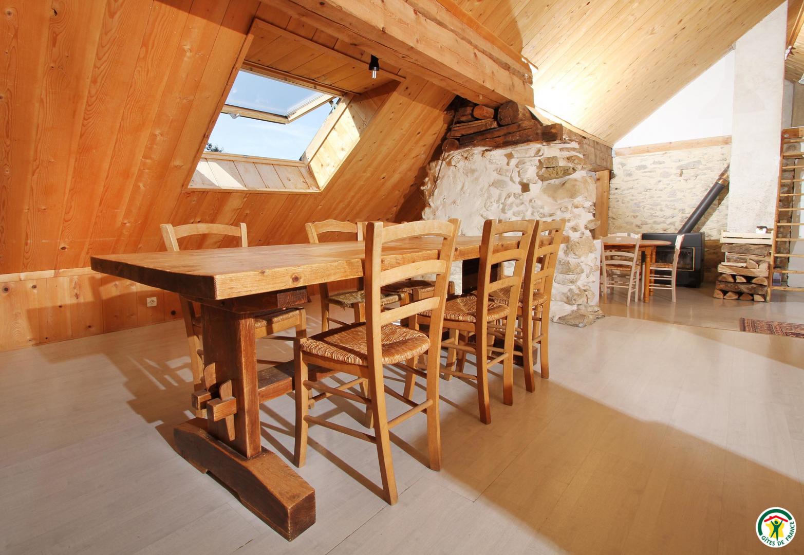 Grand séjour cuisine (clic-clac), 1 ch. (1x90, 1x140), mezzanine (1x90, 1x140), 2 salles d'eau, 2wc. Poêle à bois (bois fourni). De décembre à mars 50€ de suppl. pour charge de chauffage.