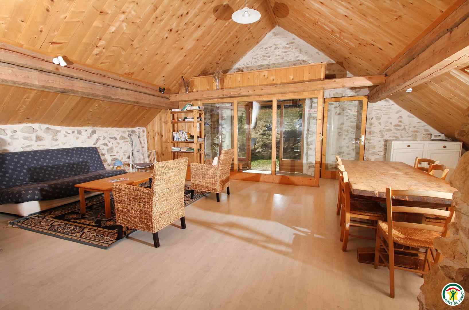 Dans une chaumière traditionnelle du Vercors, en pleine nature, gîte rural en pierres et bois, mitoyen au propriétaire, avec entrée indépendante.