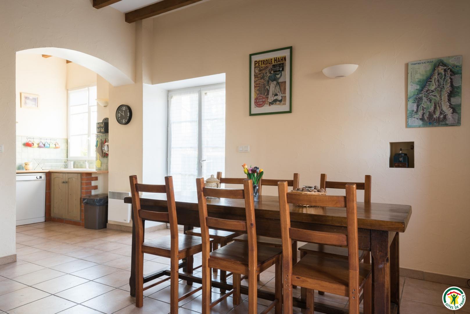 Rez-de-chaussée : grand salon, salle à manger, cuisine intégrée, WC, douche, buanderie. Étage : 3 chambres (1x90 + lit tiroir) (1x140) (2x80 ou 1x160), salle de bains, WC. Bibliothèque. Lits fait à l'arrivée. Les animaux sont les bienvenus. Activités que vous pouvez découvrir : Canyoning, parapente, baptême de l'air, escalade, VTT...