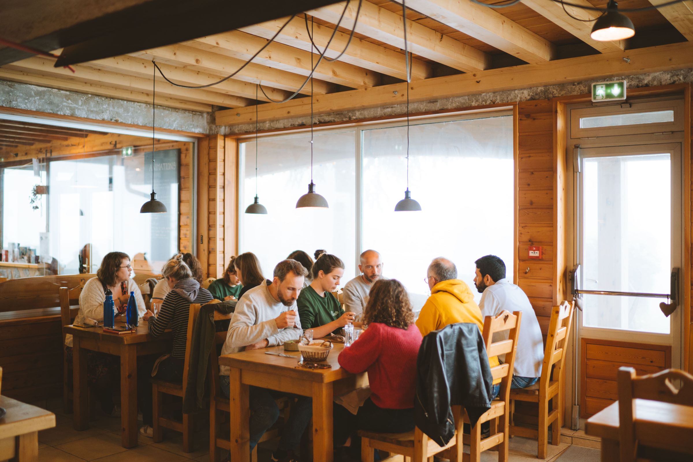 Le bar-restaurant propose une offre de restauration midi et soir, ainsi que de quoi s'hydrater et grignoter tout au long de la journée. A notre table, tout est fait maison ! Pour vous proposer du goût et des convictions dans l'assiette, nous travaillons uniquement avec des produits bruts, locaux, de saison et bio. Nous proposons toujours un plat végétarien