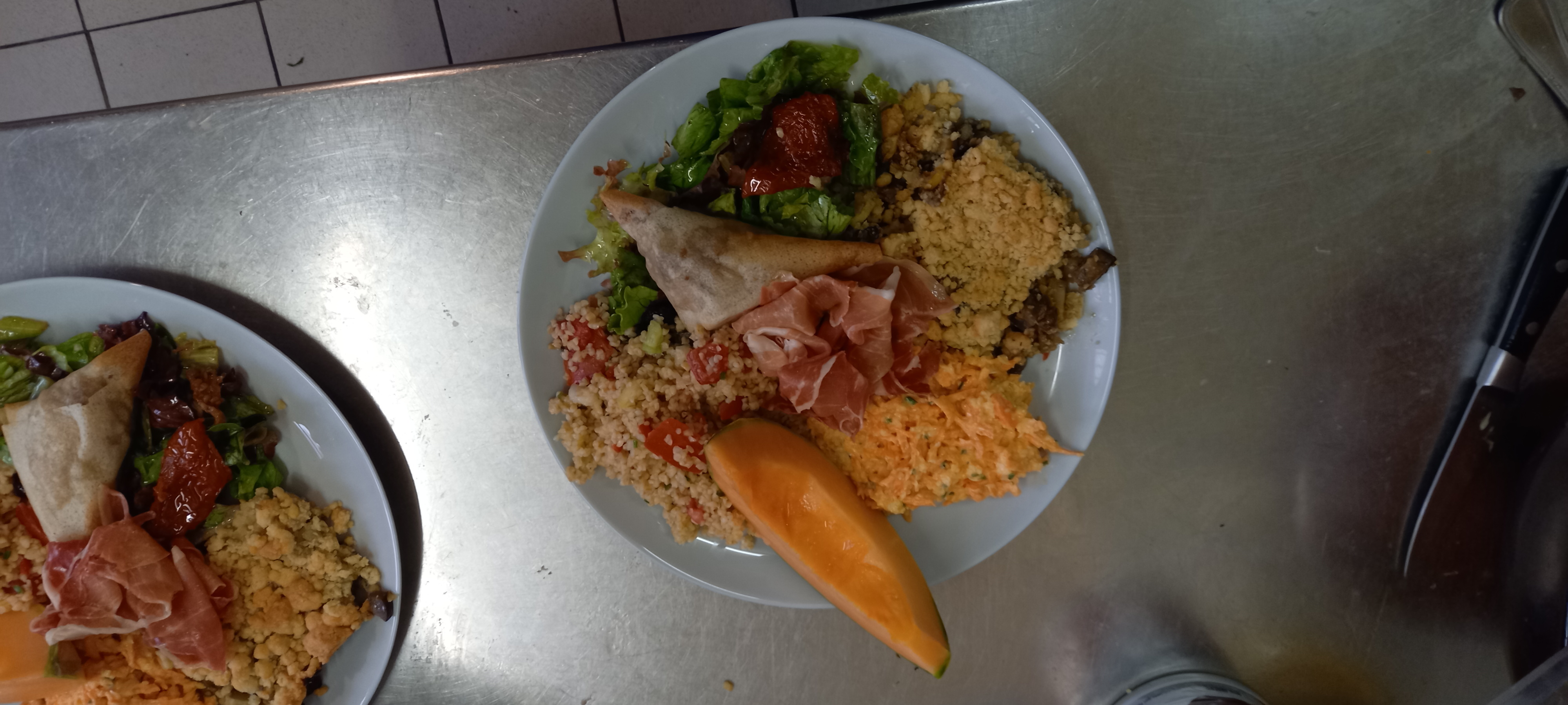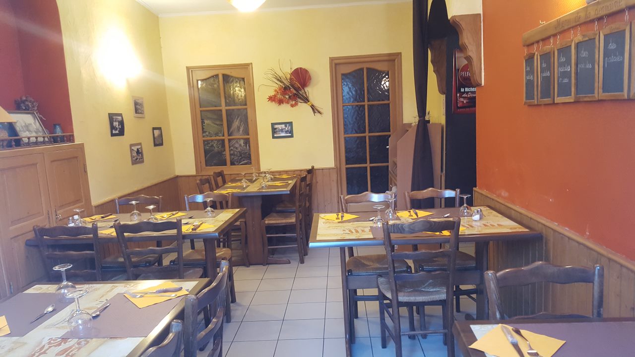 Restaurant avec belle terrasse sous le tilleul à la belle saison. Menu du jour unique "fait maison".