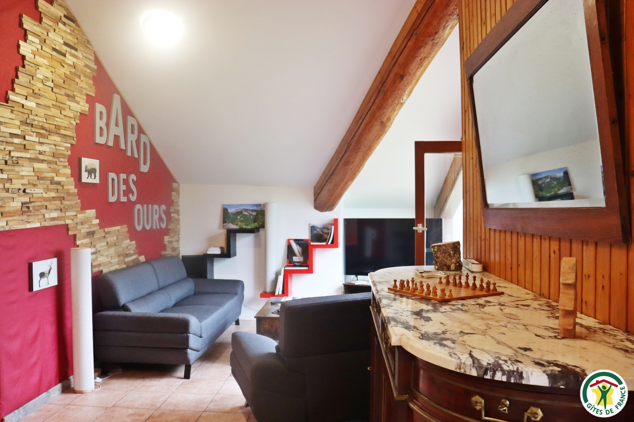 Situé dans ce hameau à 5 minutes du centre du village, Bruno accueille de chanceux vacanciers dans cette maison de vacances rénovée par ses soins. Le BARD des OURS orienté plein ouest avec ses larges vitres et son espace extérieur perché avec vue panoramique est un petit havre de paix qu'il est difficile de quitter. Aménagé au 1er étage de son habitation il bénéficie d'une entrée indépendante.