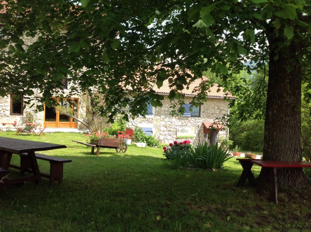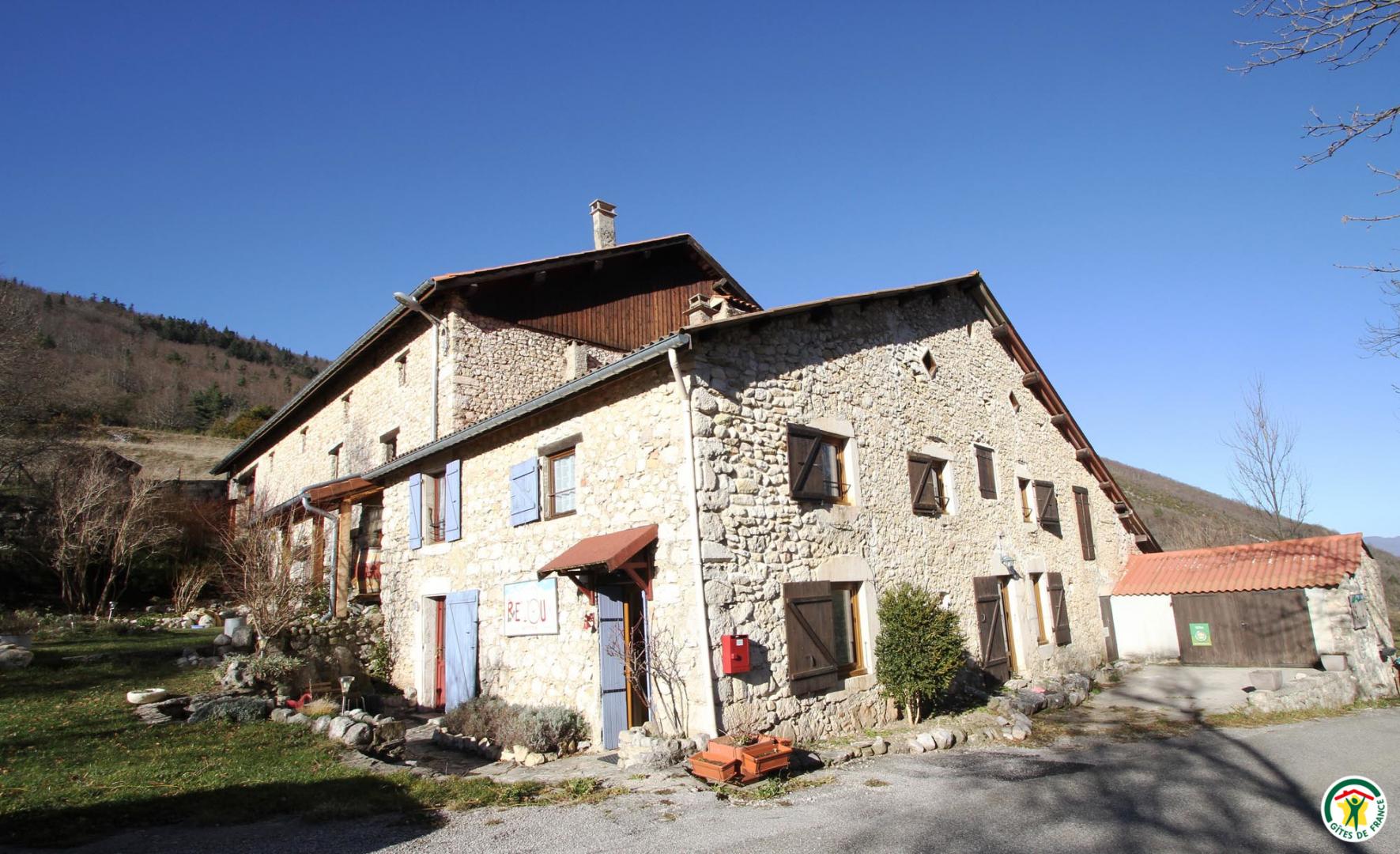 Entourée de prés avec vue sur les montagnes dans un cadre remarquable, ancienne ferme de caractère restaurée regroupant deux gîtes avec entrée indépendante, mitoyens à la maison secondaire du propriétaire.
