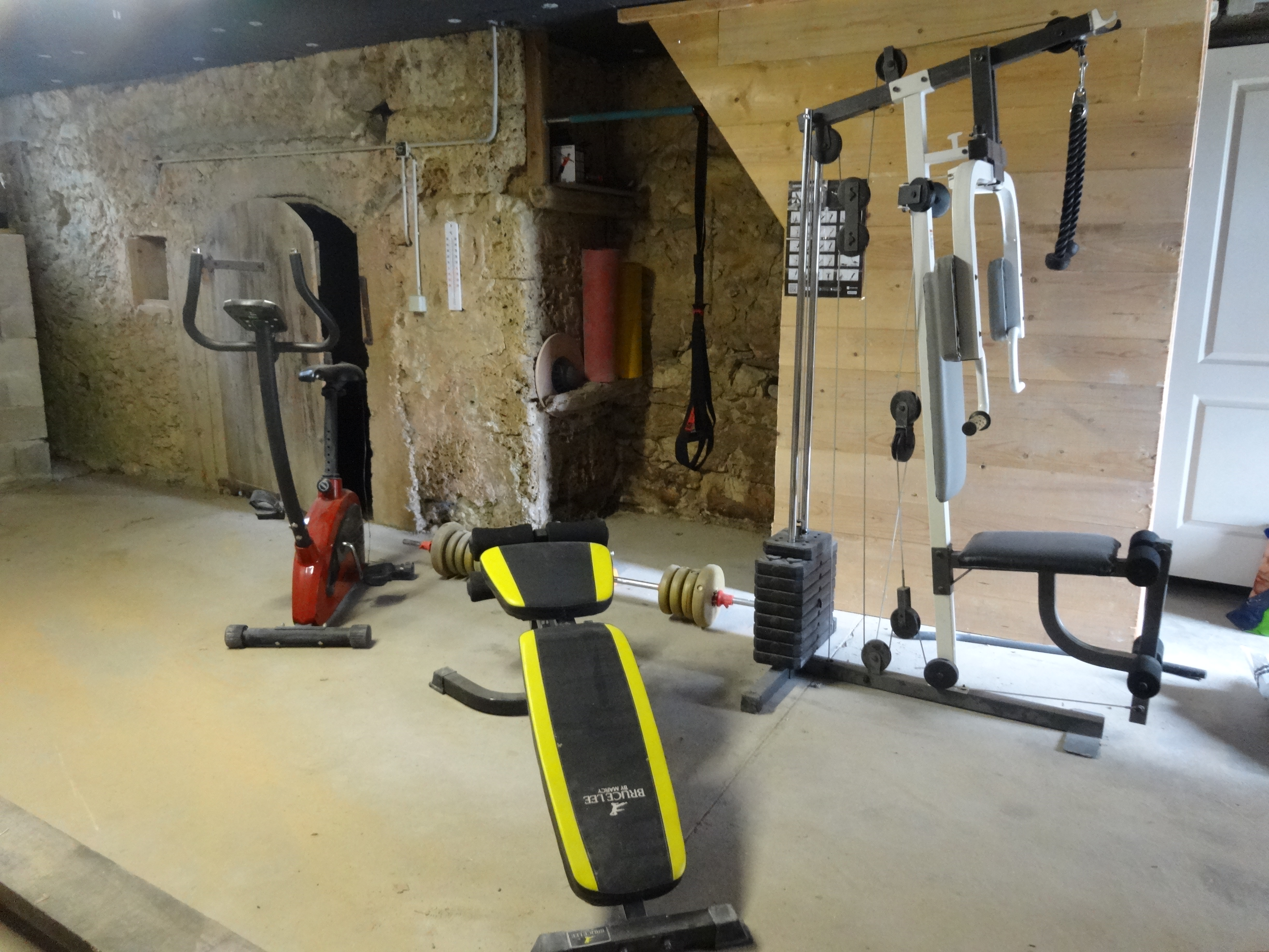 salle de jeux avec tables de ping-pong et billard, une salle de fitness et une machine à laver. Cycliste convivial avec local à vélos. Au rez-de-chaussée le gîte dispose d'une terrasse privative, d'un grand salon / cuisine équipée de 50m2, d'un WC avec douche. A l’étage Il y a une grande