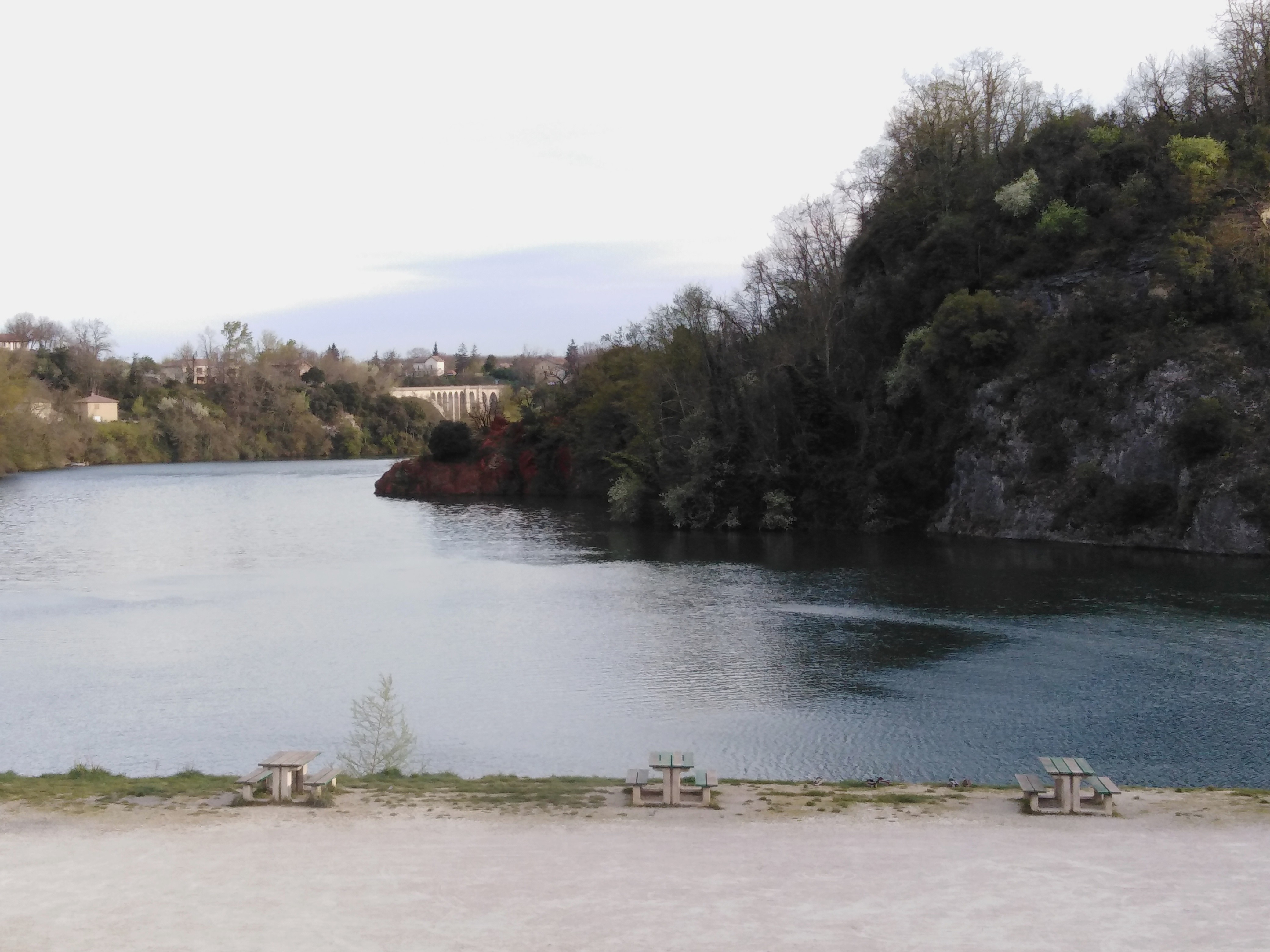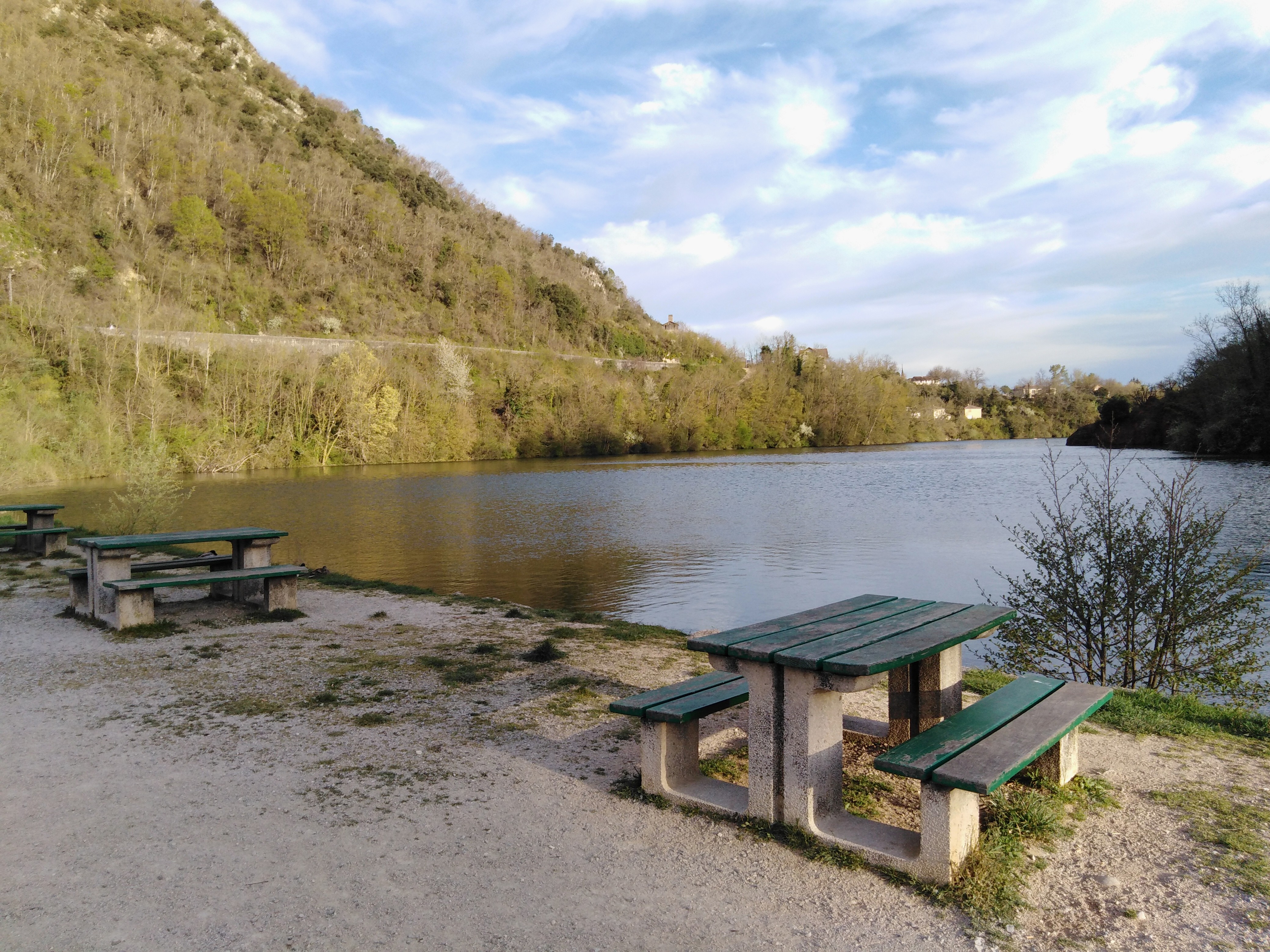 Tables en bordure de la rivière.