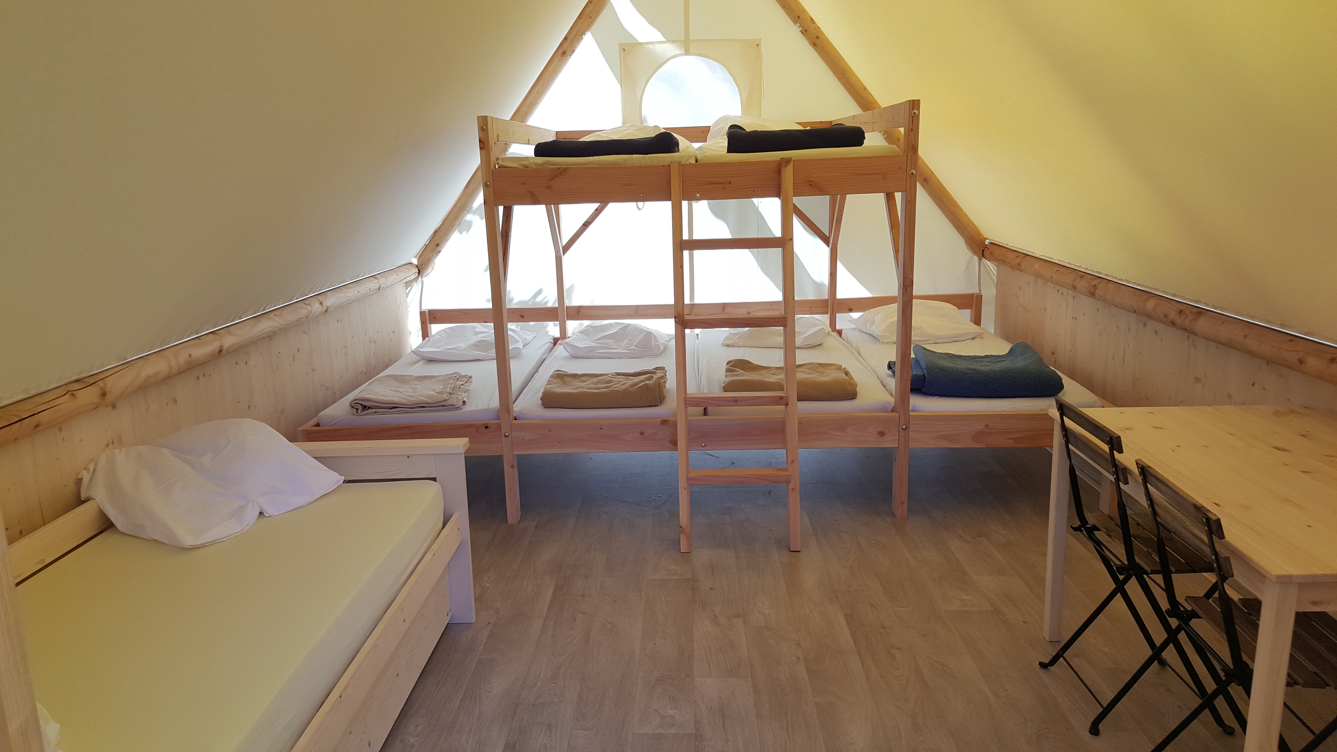 - 4 tentes de 7 personnes vous accueillent avec lits, table, poêles à bois