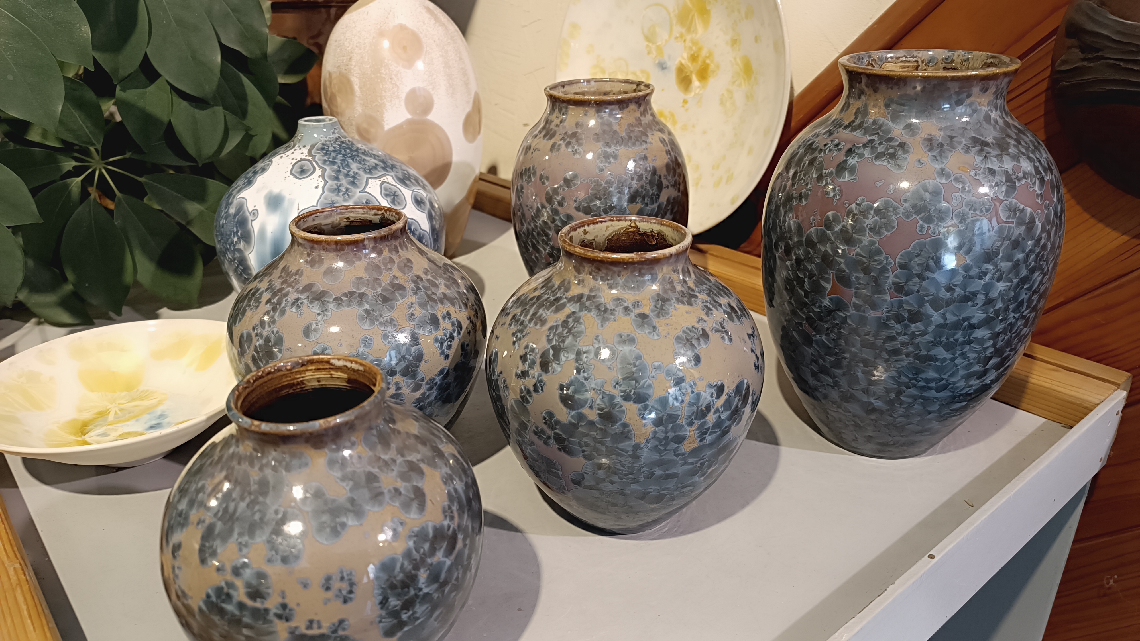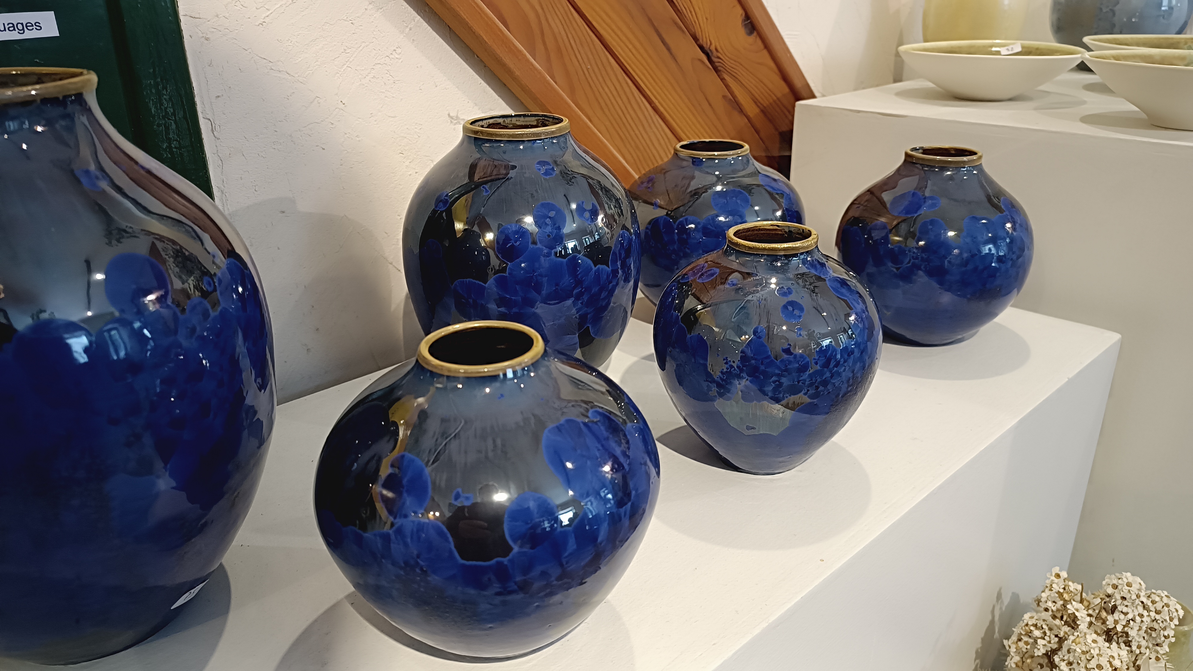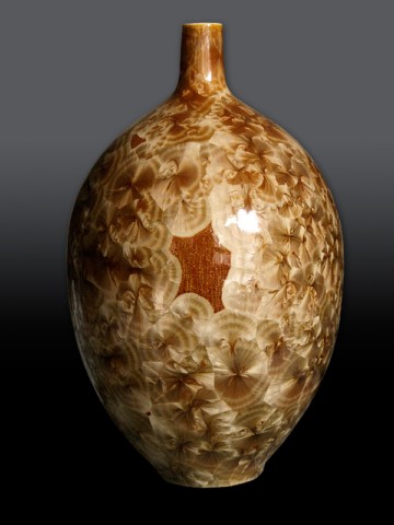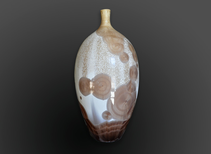 Depuis 1982, grès émaillé, cristallisations sur porcelaine, statuettes, terre mêlées. Une grande variété de techniques pour un seul potier en perpétuel renouvellement.