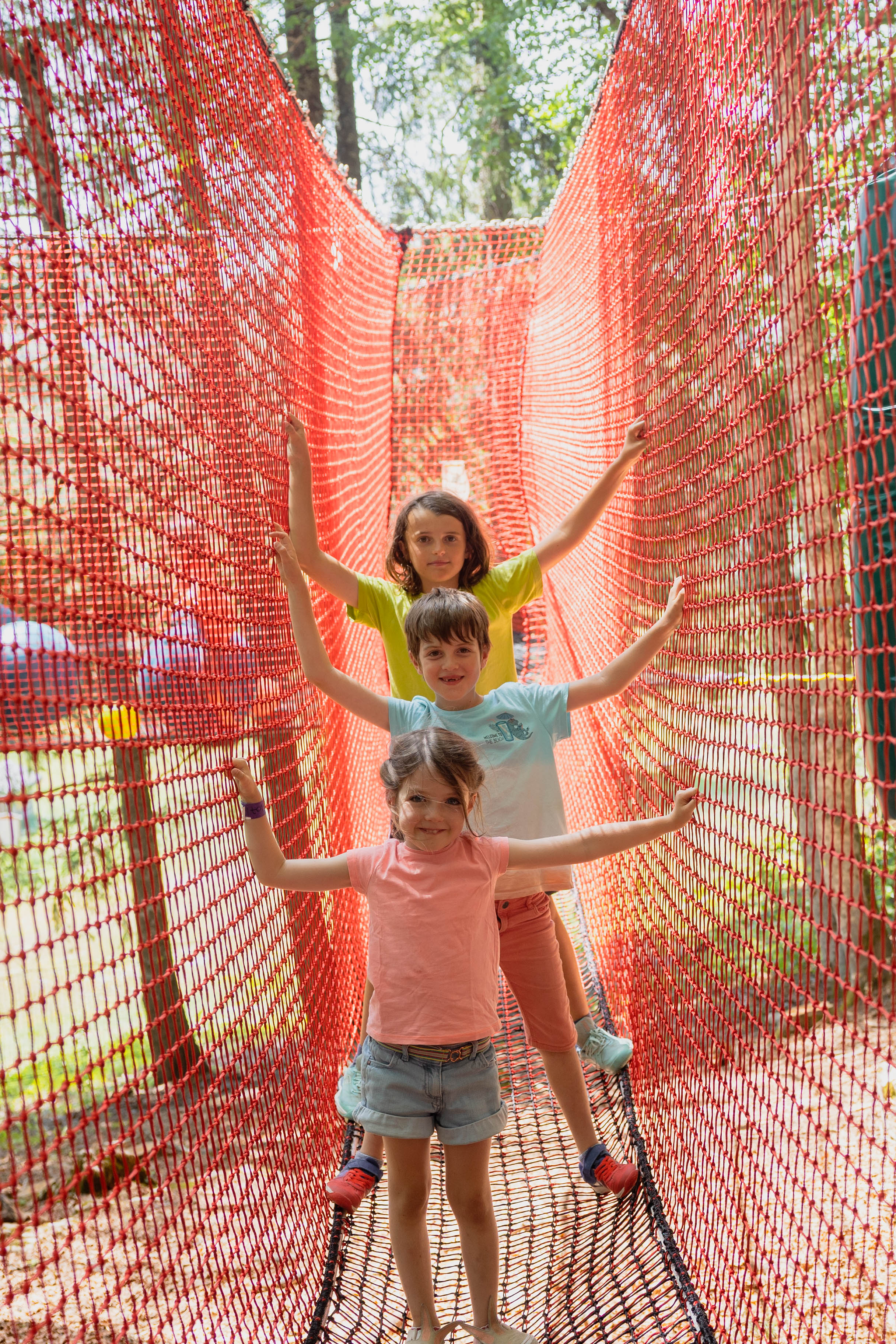 Parcours et jeux accrofilets sans baudrier idéal pour les familles avec enfants (de 3 à 14 ans). Dans un cadre arboré et reposant, ce parcours est composé de 2 mers de filets, de toboggans, cabanes... pour une journée inoubliable en montagne