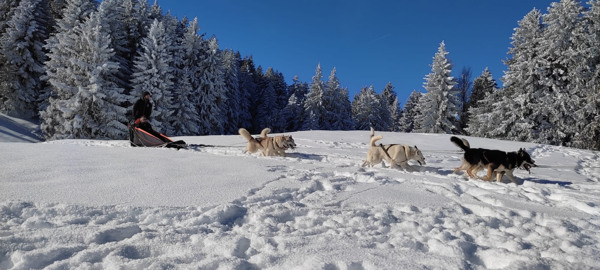 Une fois installé à bord de nôtre traîneau, conduit et guidé par notre musher professionnel, nous partirons à la découverte de nouvelles sensations sur les pistes enneigées du Vercors, tracté par notre meute de husky.
